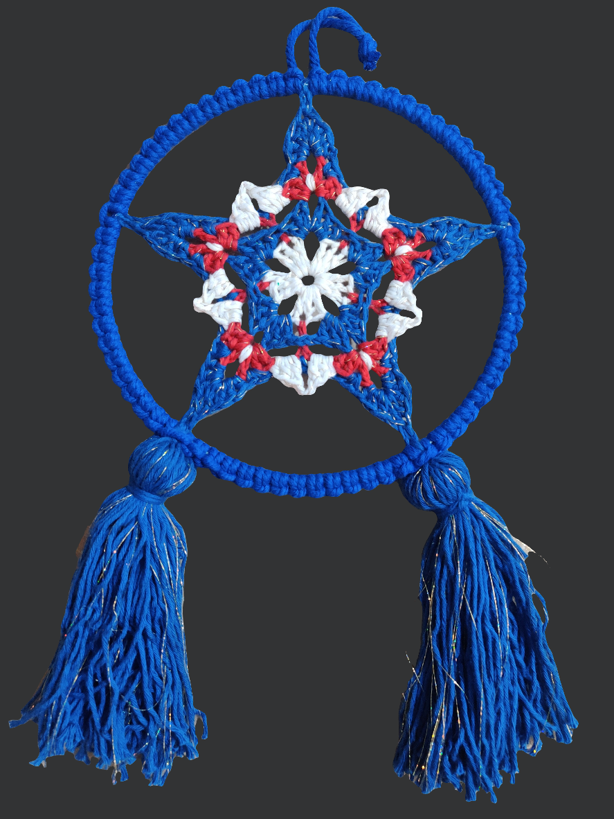 Celebrate your hometown champs with the Linda Parol! The original crocheted parol will be offered in your team colors, blue and white, and includes red as a nod to their jersey numbers.